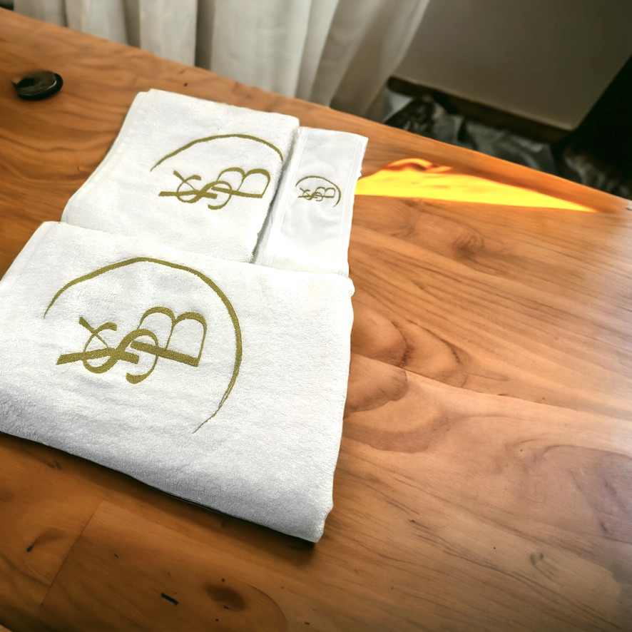 Beyaz Havlu Seti - Özel Logolu Üretim (Baş Havlusu, Sedye Havlusu, Saç Bandı)